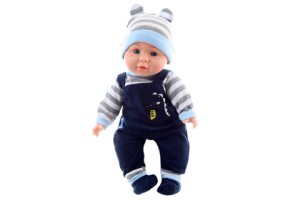 Miminko s měkkým tělíčkem. Po stlačení tělíčka začne miminko vydávat zvuky (smích, pláč, mama, tata).