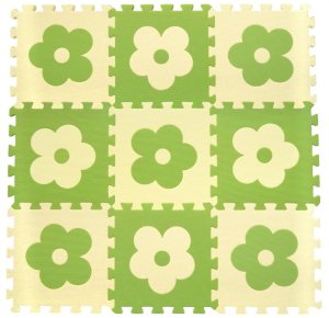Pěnové podlahové puzzle v béžovo-zeleném provedení s vroubkovaným povrchem a dostatečně velkými vyjímatelnými částmi.