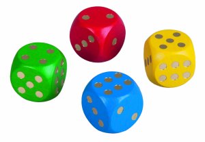 Dřevěné kostky různých barev o velikosti 25 x 25 x 25 mm slouží nejen ke klasické stolní hře.