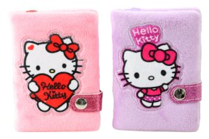 Plyšový mini zápisník s motivem kočičky Hello Kitty s klipem.