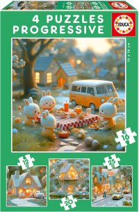 Soubor čtyř progresivních puzzle EDUCA - s různou obtížností a různě velkými dílky.