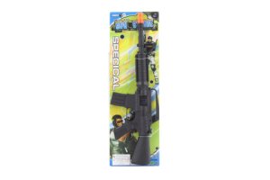 Puška s 10 pěnovými náboji. Rozměry 45x8,5x22 cm. 4xAA baterie součástí.