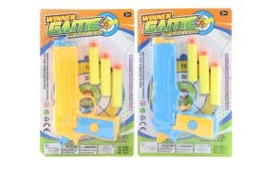 Pistole s terči natahovací. Rozměry balení 25 x 16 x 11 cm.