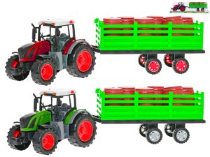 Pěkný detailní model farmářského traktoru s přívěsem a nákladem.