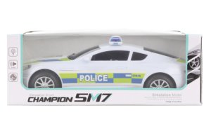 Plastové policejní auto na baterie o rozměru cca 22,5 x 9,5 x 7,5 cm.