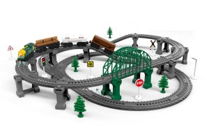 Vlak trať s efekty. Rozměry sestavené trati 77x76x16 cm.