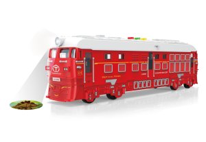 Signální stanice s výhybkou. Otáčením červeného knoflíku, rozhodnete jakým směrem se vlak vydá či zastaví nebo bude pokračovat dál v jízdě.