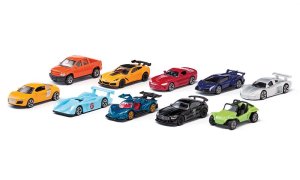 Set 10 sportovních aut. Rozměry: 33x40x21cm.
