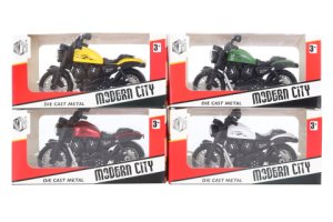 Kovový model motorky o rozměru cca 10 x 6,5 x 5 cm.