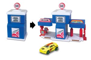 Tuningová garáž Majorette má 2 patra, čerpací stanici, manuálně ovládaný výtah a světelné i zvukové efekty, zvedací plošinu, tuningovou část a 10 parkovacích míst.