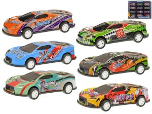 Auto kovové. Velikost 7,5 cm. Volná kola. 6 variant - modrá, zelená, žlutá, červená, růžová, fialová.