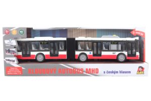 Kloubový autobus městské hromadné dopravy na setrvačník s českým hlasem a světelnými doplňky.