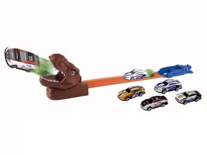 Vystřelovací dráha s dinem. Balení obsahuje dráhu+4 autíčka.