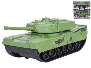 Tank na baterie. Tank vydává zvuky střelby a svítí mu dělo po stisknutí tlačítka, pohon je na setrvačník.