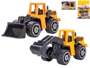 Stavební autíčko na zpětný chod, 4 druhy: sklápěč, bagr, jeřáb, buldozer.