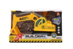 Stavební auto s velkými koly. Materiál plast, kola jsou pogumovaná.