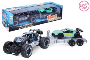 Tahač s autem. Rozměry 45x12,5x9,5 cm.