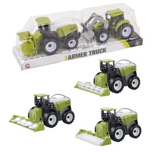 Sada obsahuje traktor vybavený mechanickým pérovým strojkem natahovaným klíčkem (3 rozdílné rychlosti vpřed, jedna rychlost vzad, neutrál a ruční brzda), vlečku, secí stroj, válec, obracečku, pohrabovadlo, …