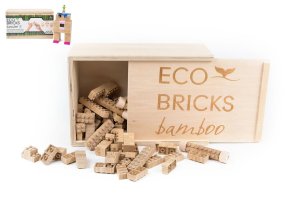 D řevěná stavebnice, která obsahuje 38 dílků v krásných barvách, které mohou děti použít k vytváření různých staveb.
