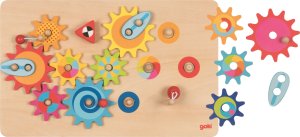 Skládání barevných dřevěných ozubených kol na podložku je jen polovina zábavy.