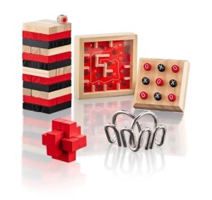 Soubor mini her a hlavolamů v provedení dřevo/kov.