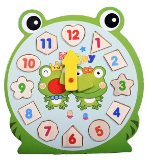 Skládačka hodiny dřevěná žabka je zábavná a edukativní hračka, která spojuje učení o čase s kreativním skládáním.