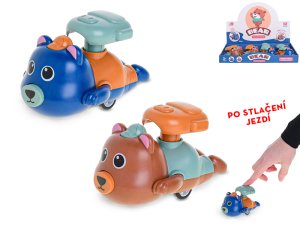 Plastový medvěd jezdící po stlačení je ideální hračka pro menší děti.