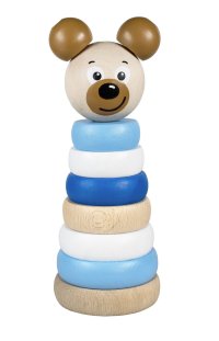 Dřevěná skládací pyramida s motivem medvídka rozvíjí představivost, logické myšlení a motorické schopnosti dítěte.