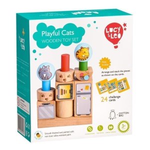Hravá kočička je dřevěná skládačka s různými geometrickými tvary.