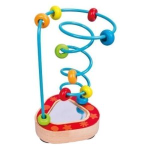 Motorický labyrint s několika barevnými korálky, jejichž posouváním se mění obrazce v zrcátku na podstavě.