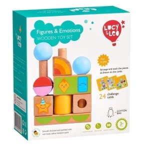 Tvary a emoce je dřevěná skládačka s různými geometrickými tvary.