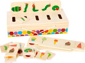 Rozměry krabičky: 24x12x3 cm Rozměr hrací plochy 24x24 cm Rozměr figurky: 3 cm, Ø2 cm Věk: 3+ Materiál: 100% FSC dřevo