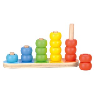 Největší kostka: 4x3,5x5 cm Nejmenší kostka: 2,5x2,5x3,5 cm Věk: 3+ Materiál: dřevo