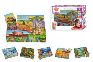 Eichhorn dřevěné obrázkové kostky - 6 motivů na 12 kostkách, 6 předloh pro snadnější skládání obrázku, rozměr 16 x 12 cm.