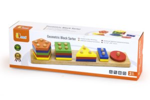 Rozměry balení: 18,5x17x4,5 cm Max. rozměr kostky: 4x4x8 cm Věk: 12m+ Materiál: dřevo, kov, plast