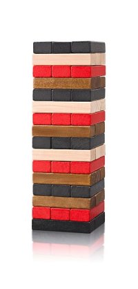 D řevěná stavebnice, která obsahuje 38 dílků v krásných barvách, které mohou děti použít k vytváření různých staveb.