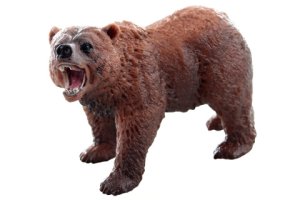 Plastový medvěd o rozměrech 12x7x3,5 cm.