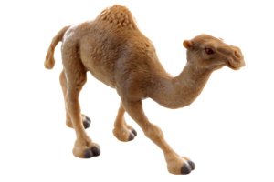 Plastový velbloud o rozměrech 11x8x2,5 cm.