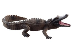 Plastový krokodýl o rozměrech 15x4x7 cm.