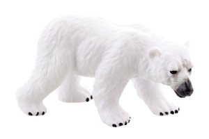 Plastový lední medvěd o velikosti cca 10 x 5,5 x 4,5 cm.