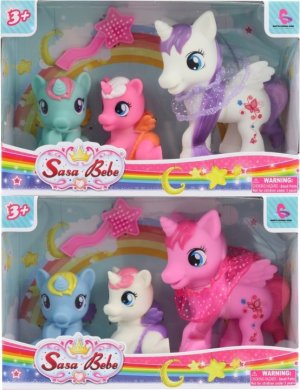 Sada 3 jednorožců. Vlastnosti: součástí balení je také hřebínek, hřívu u největšího jednorožce lze česat.