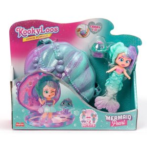 KookyLoos dobývají i moře!Objevte Star, Pearl, Coral a Jewel - malé mořské víly z Kooky Springs. Všechny jsou ve vlastní mušli, které mohou sloužit i jako taštička a můžete si ji vzít kamkoliv budete chtít! Uvnitř najdete spoustu doplňků a exkluzivního mazlíčka.