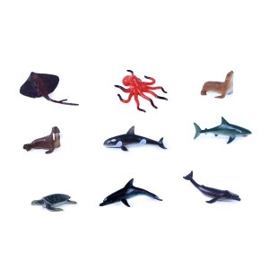 V balení najdeš 10 ks různých figurek mořských zvířat, jako jsou velryba, chobotnice, mořská želva, rejnok a jiné.