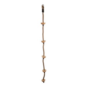 Dětské šplhací lano v přírodním stylu s nášlapnými body, které jsou vyrobeny z masivního dřeva.