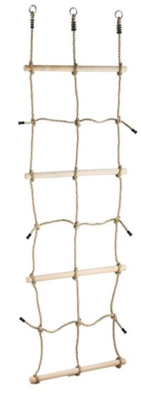 Délka příčky: 28 cm Délka žebříku: 280 cm Nosnost: 50 kg Věk: 3+ Materiál: dřevo,kov Lano zakončeno kovovým kroužkem