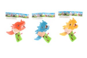 Plastová vodní pistole ve tvaru dinosaura.