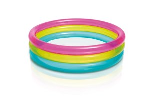 Veselá nafukovací sada se skládá z bazénu, který tvoří 2 vzduchové komory a jeho rozměr je 122 x 25 cm.