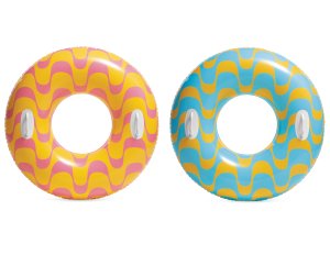 Užívej si relaxu a nech se unášet vlnami s nafukovacím kruhem se stylovým motivem! madla pro snadné udržení vyrobeno z vinylu o tloušťce 0.25mm bez obsahu ftalátů Nosnost: max. 90 kg Velikost: 107 cm