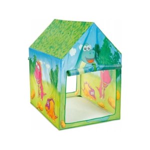 Barevný dětský stan s motivy dinosaurů je vhodný na zahradu i do dětských pokojíků.
