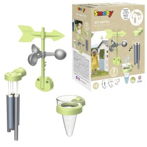 Hrací sada meteorologická stanice ke zkoumání počasí: zvonkohra, větrná korouhvička/anemometr a srážkoměr.